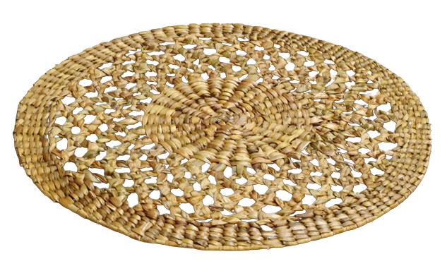 Natural water hyacinth placemat with a rustic, handcrafted look.